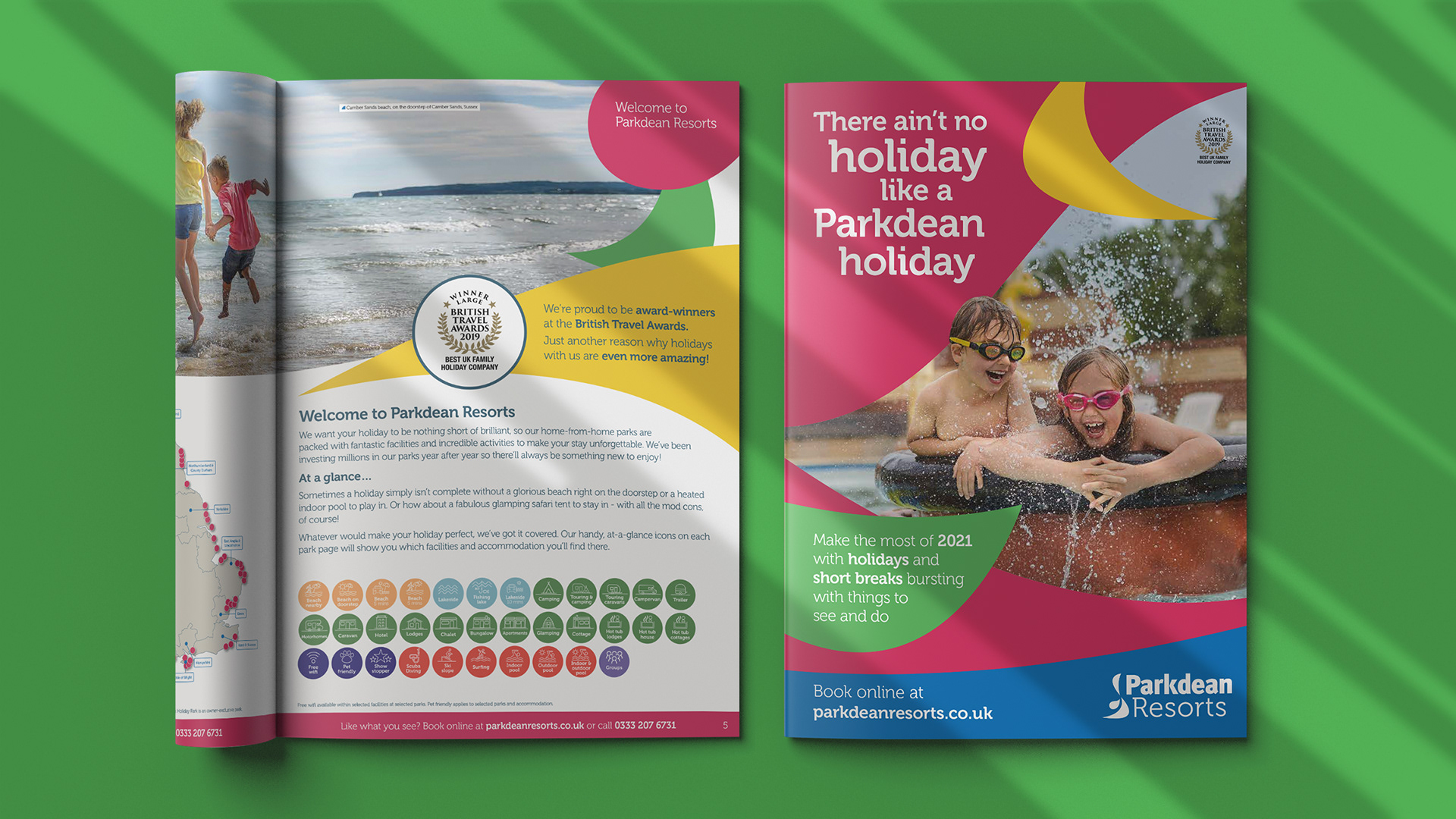 Parkdean Resorts is one of the biggest holiday park companies in the UK. Consisting of over 67 parks across the country. In collaboration with an agency we created a new brand identity to cover all media platforms and on park sites.